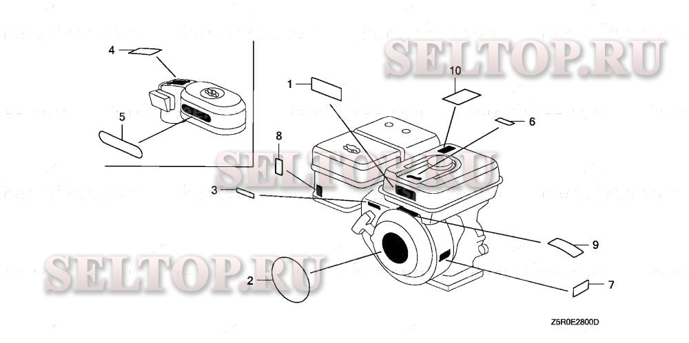 Этикетка для Honda GX390U1 PXU, взрыв-схема: