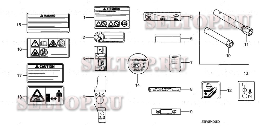 Прочие запчасти (этикетка, инструмент) для Honda GX390U1 QWC4