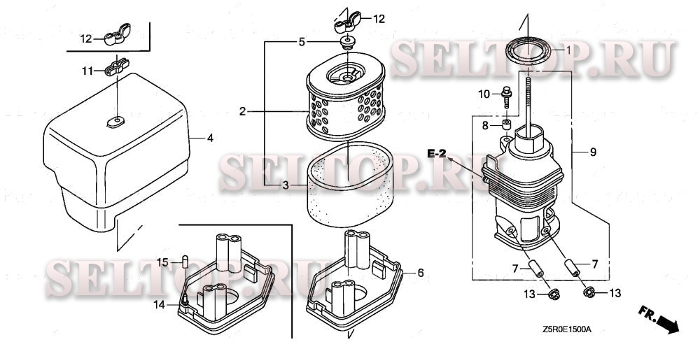 Воздушный фильтр (1) для Honda GX390U1 QXE8, взрыв-схема: