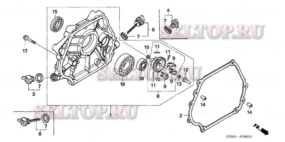 Крышка картера (1) для Honda GX390U1 SMD3, взрыв-схема:
