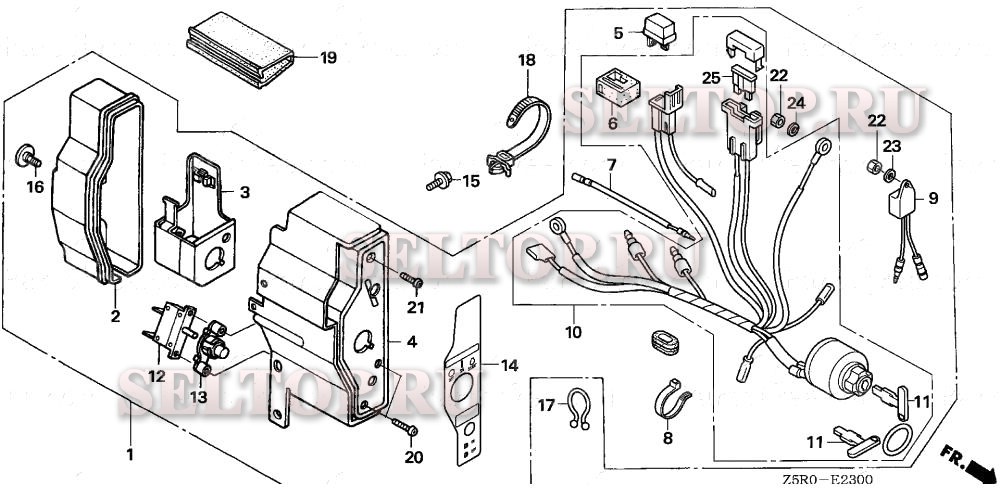 Блок управления (1) для Honda GX390U1 VDE2, взрыв-схема: