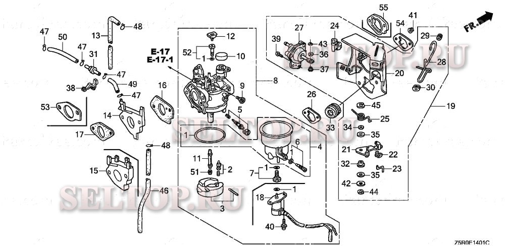 Карбюратор (2) для Honda GX390U1 VS49, взрыв-схема: