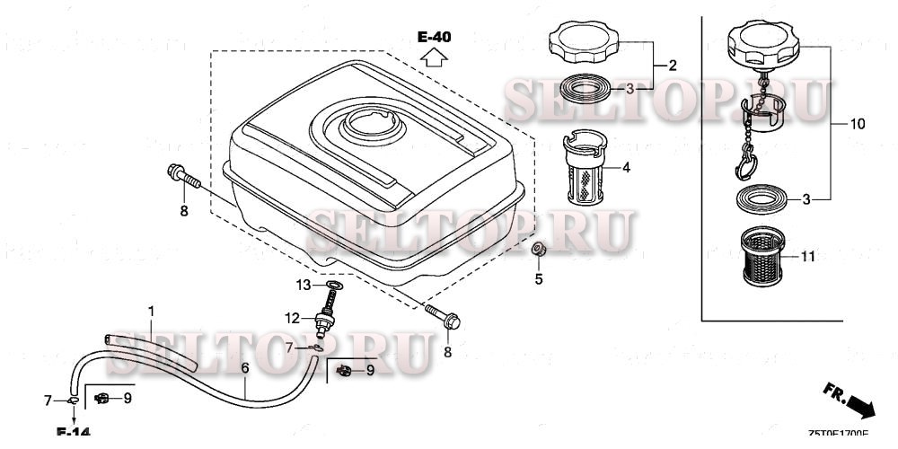 Топливная трубка для Honda GX390UT1 QK4, взрыв-схема: