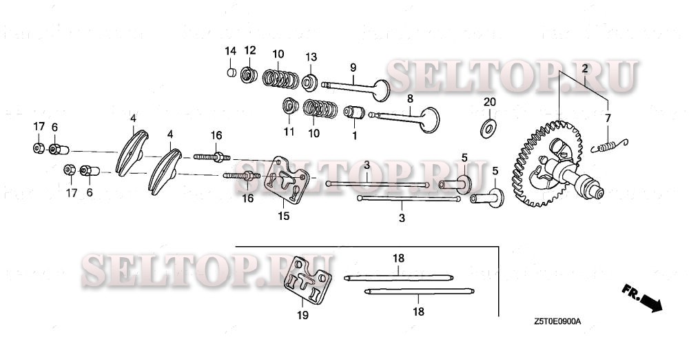Распредвал для Honda GX390UT1 SHQ4, взрыв-схема: