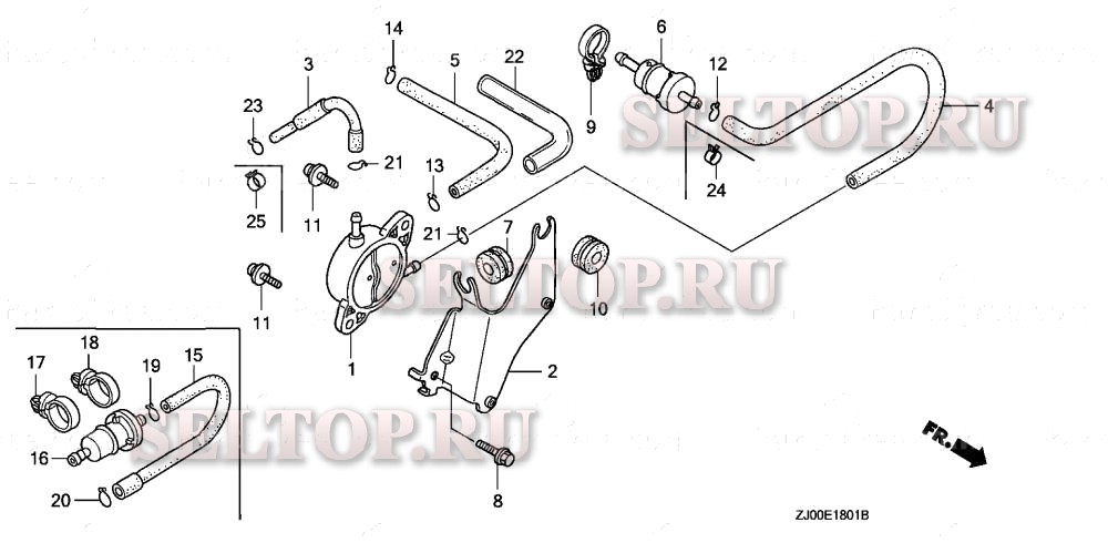 Топливный насос (2) для Honda GX610K1 QZF/A, взрыв-схема: