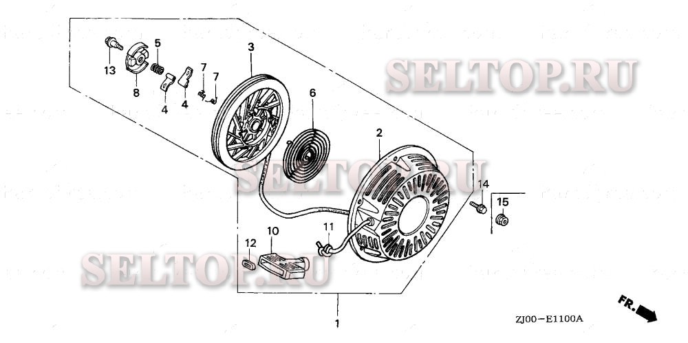 Ручной стартер для Honda GX610K1 VD/A, взрыв-схема: