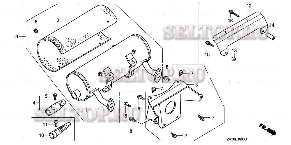 Глушитель (4) для Honda GX610U1 QZE6, взрыв-схема: