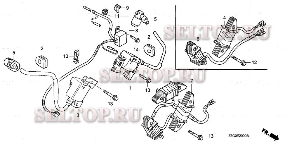 Катушка зажигания для Honda GX620R1 QXW2, взрыв-схема: