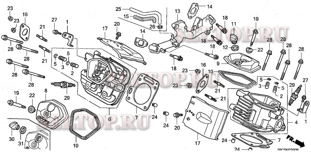 Головка цилиндра для Honda GX620R1 QYA, взрыв-схема:
