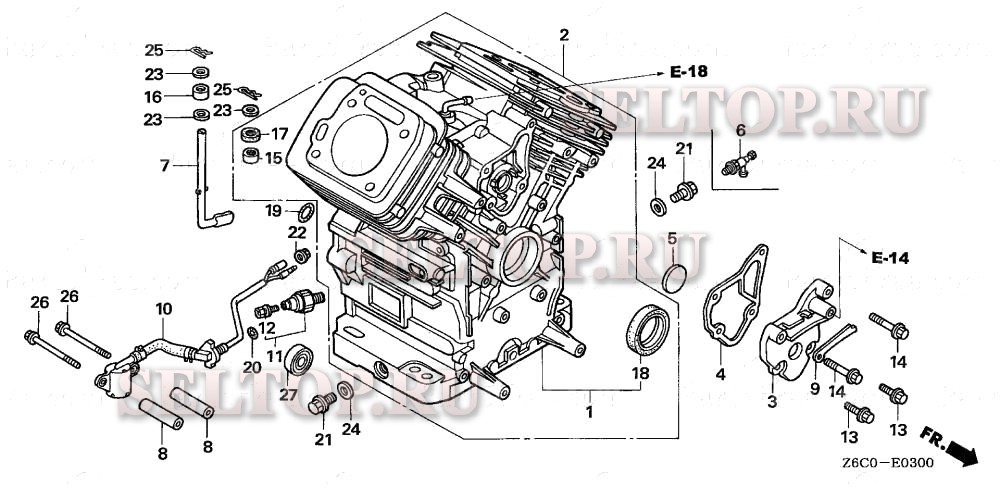 Блок цилиндров для Honda GX620R1 VAB2, взрыв-схема: