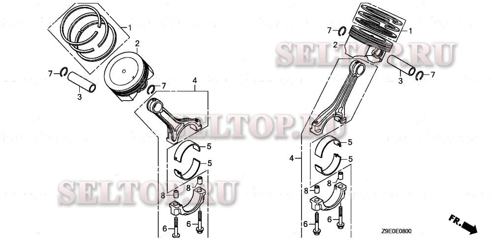 Поршень для Honda GX660R TXF7, взрыв-схема: