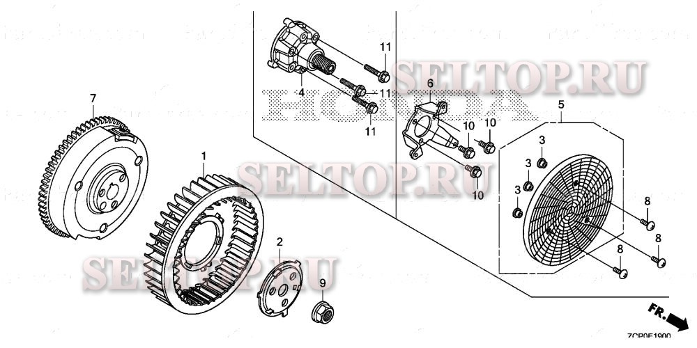 Маховик для Honda GX660RH BAF, взрыв-схема: