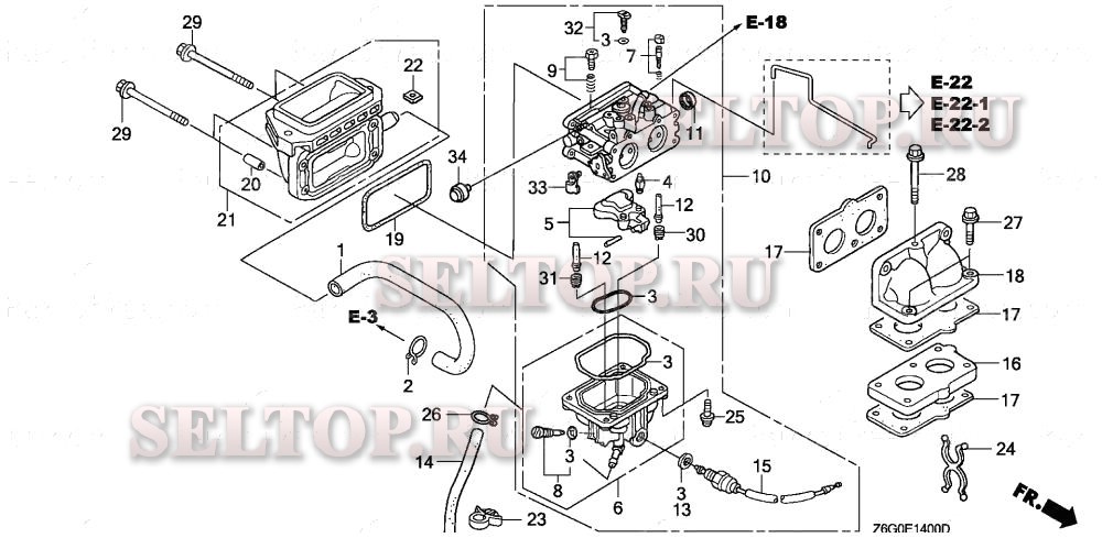 Карбюратор для Honda GX670U VXE1, взрыв-схема: