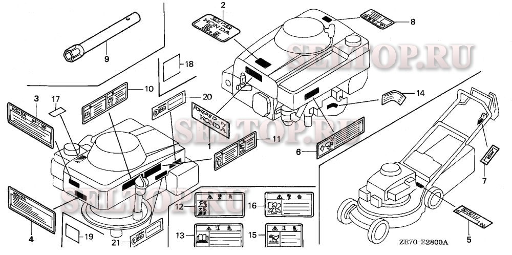 Этикетки (1) для Honda GXV160K1 N62, взрыв-схема: