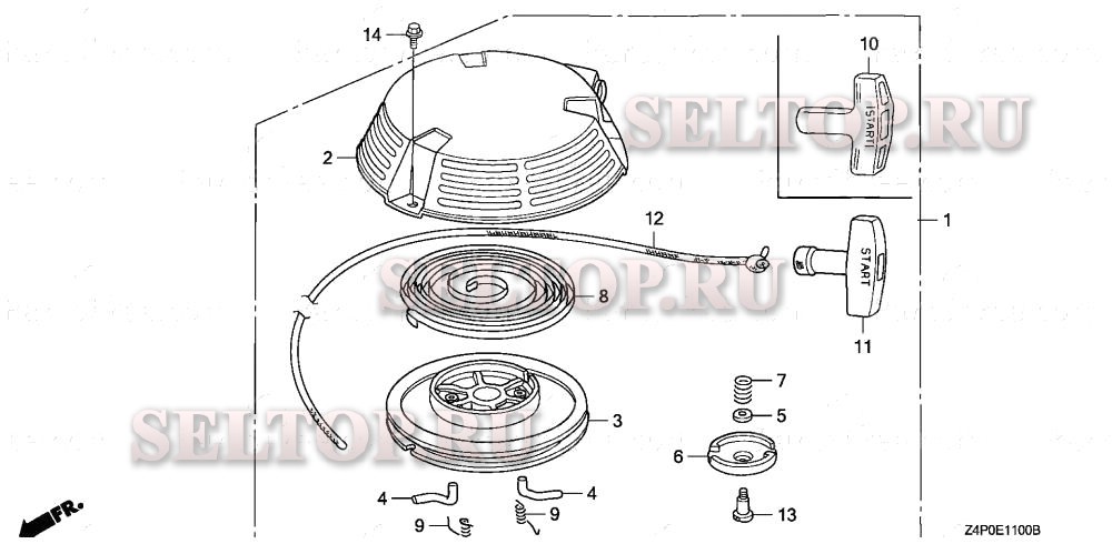 Ручной стартер для Honda GXV160UH2 A1S, взрыв-схема:
