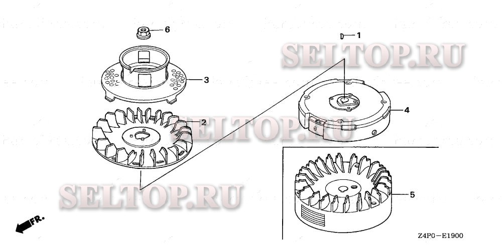 Маховик (1) для Honda GXV160UH2 SFY, взрыв-схема: