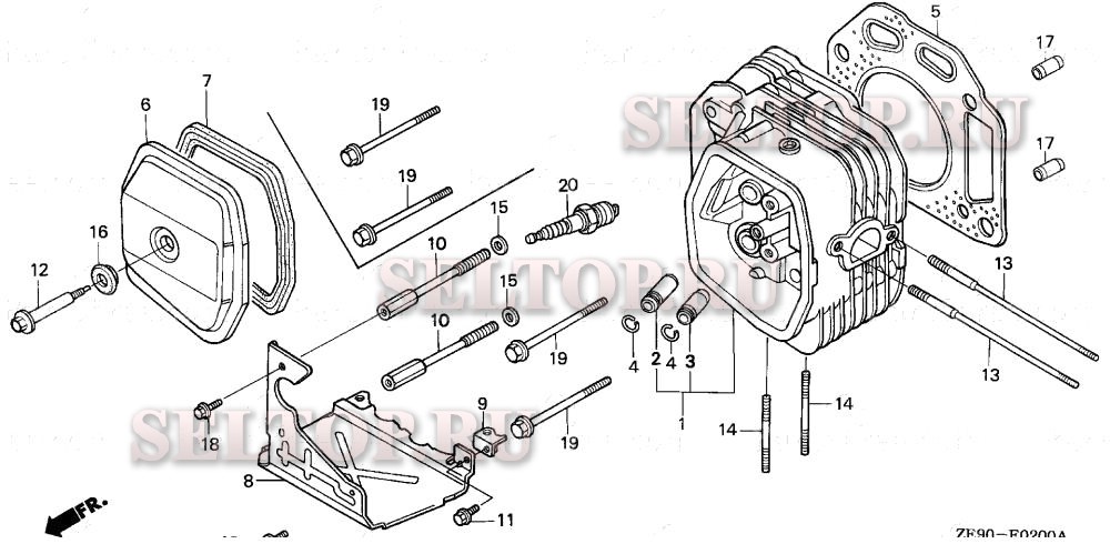 Головка цилиндра для Honda GXV340K1 DE33, взрыв-схема: