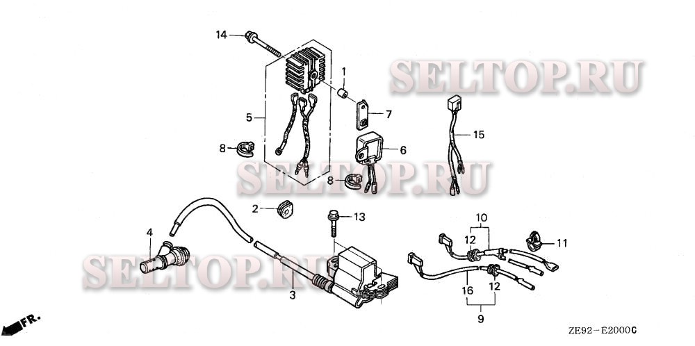 Катушка зажигания для Honda GXV340K2 DAP2, взрыв-схема: