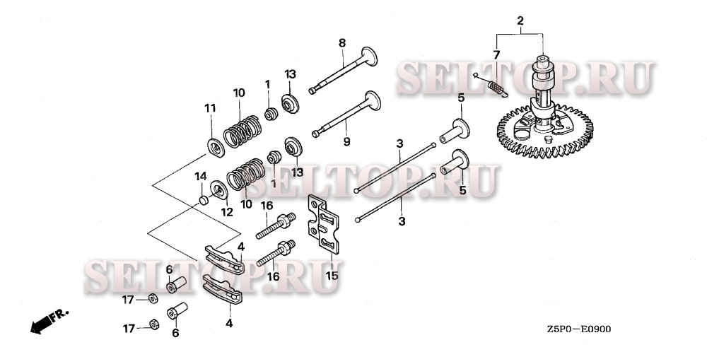 Распредвал для Honda GXV340UA2 DA2, взрыв-схема: