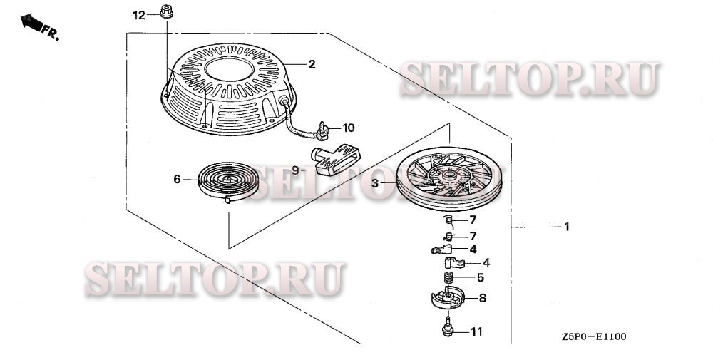 Ручной стартер для Honda GXV340UA2 DAS, взрыв-схема: