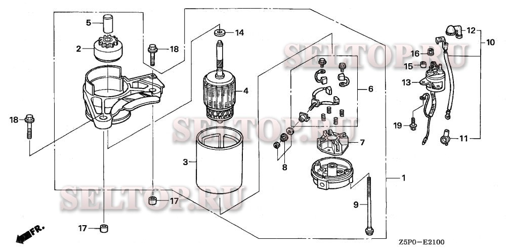 Стартер для Honda GXV340UA2 DAS, взрыв-схема: