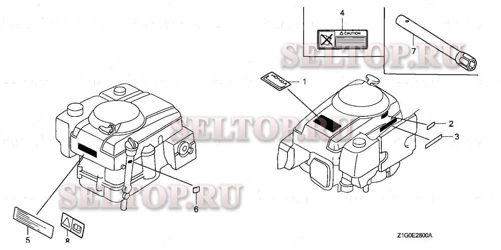 Этикетка для Honda GXV390A1 DA33, взрыв-схема: