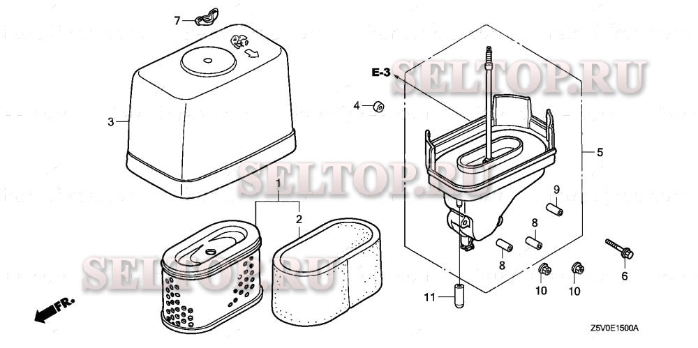 Воздушный фильтр для Honda GXV390RT1 DA23, взрыв-схема: