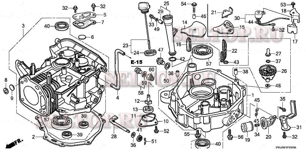 Блок цилиндров, масляный поддон для Honda GXV390RT1 DAS, взрыв-схема: