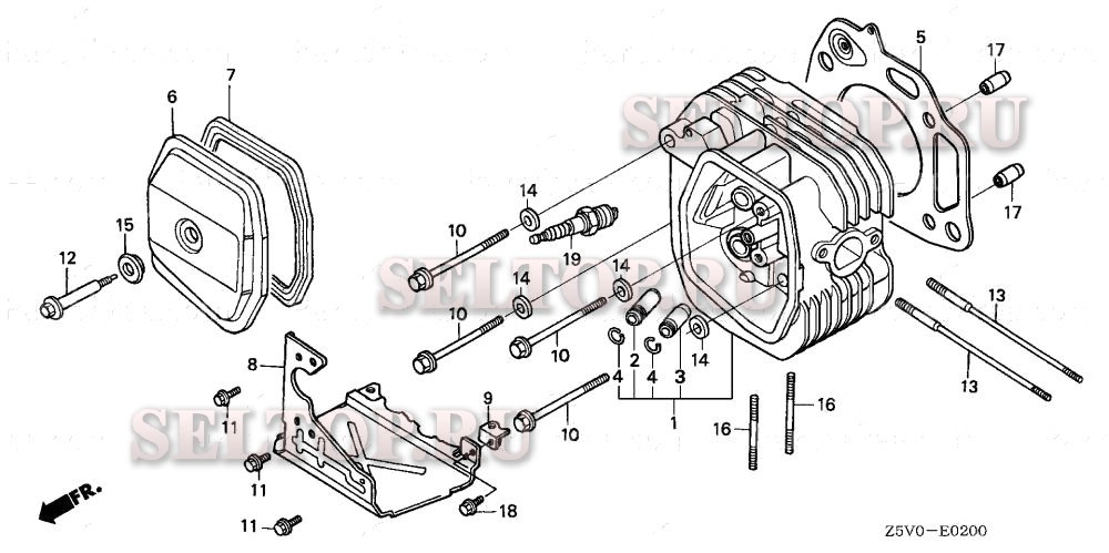Головка цилиндра для Honda GXV390RT1 DCST, взрыв-схема:
