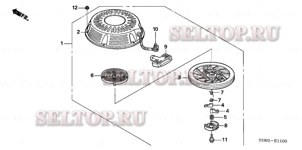 Ручной стартер для Honda GXV390UA1 DABG, взрыв-схема: