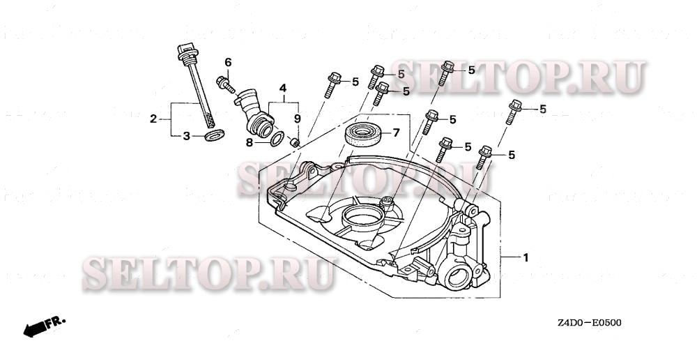 Корпус с датчиком уровня масла для Honda GXV50U SA, взрыв-схема: