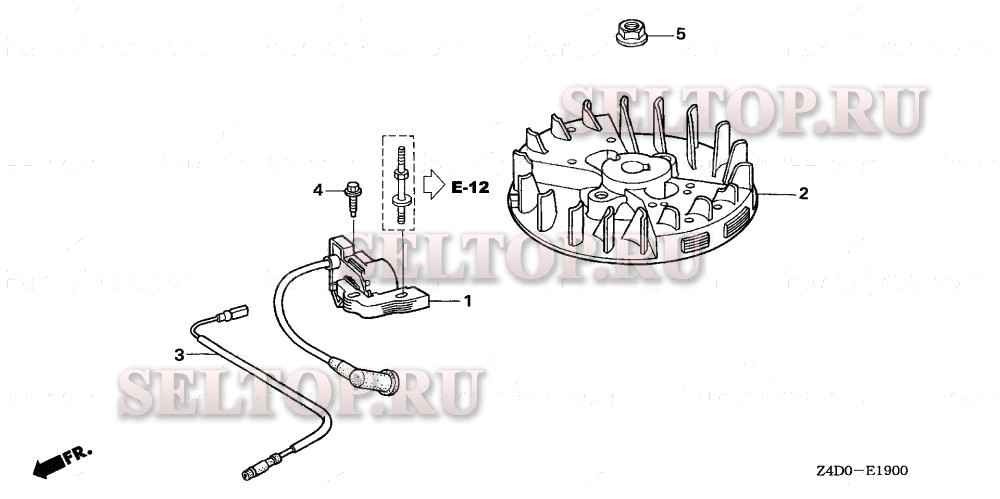 Маховик, катушка зажигания для Honda GXV50U SA, взрыв-схема: