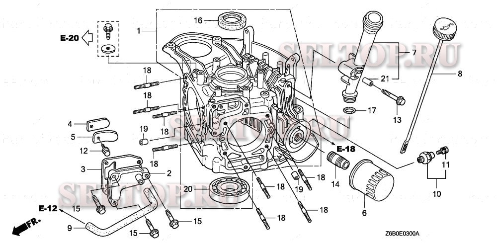Картер для Honda GXV530U DXA2, взрыв-схема: