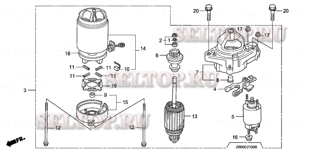 Стартер для Honda GXV530U DXA2, взрыв-схема:
