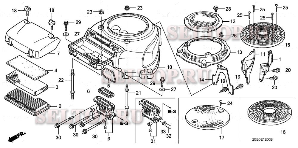 Кожух вентилятора для Honda GXV530U QXA5, взрыв-схема: