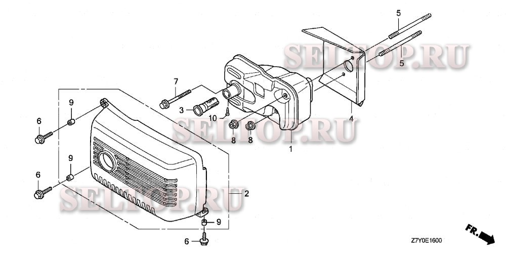 Глушитель для Honda GXV57U N7E1, взрыв-схема: