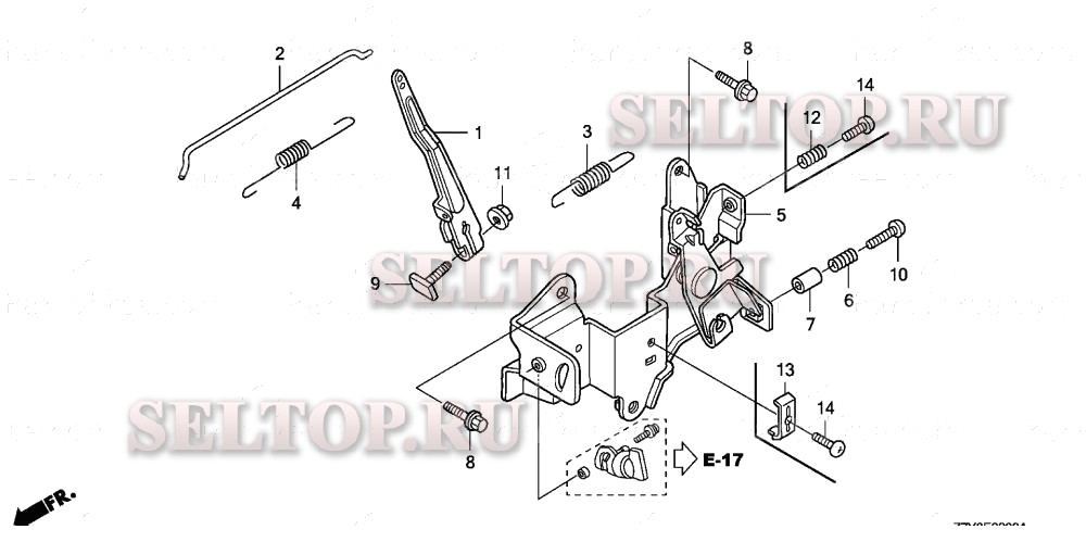 Управление для Honda GXV57U N7E2, взрыв-схема: