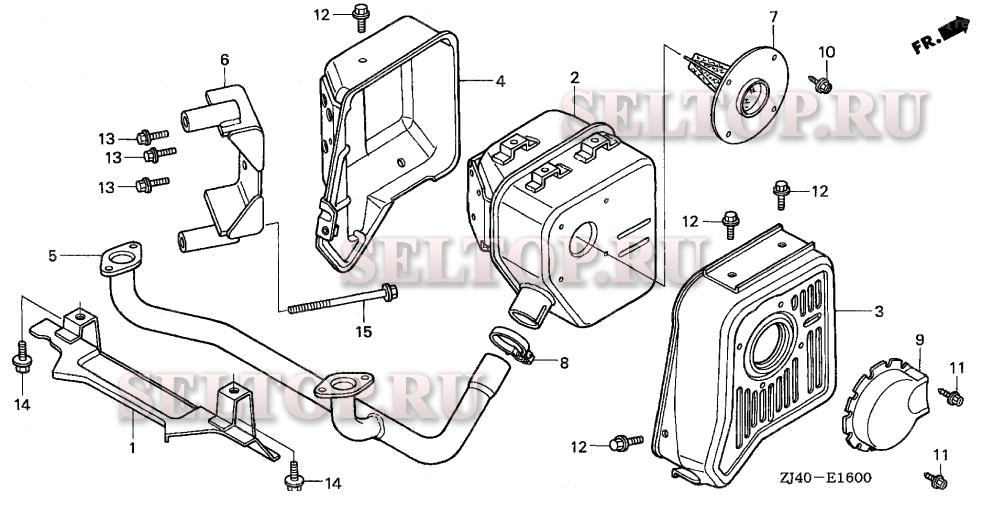 Глушитель для Honda GXV610K1 QAF, взрыв-схема: