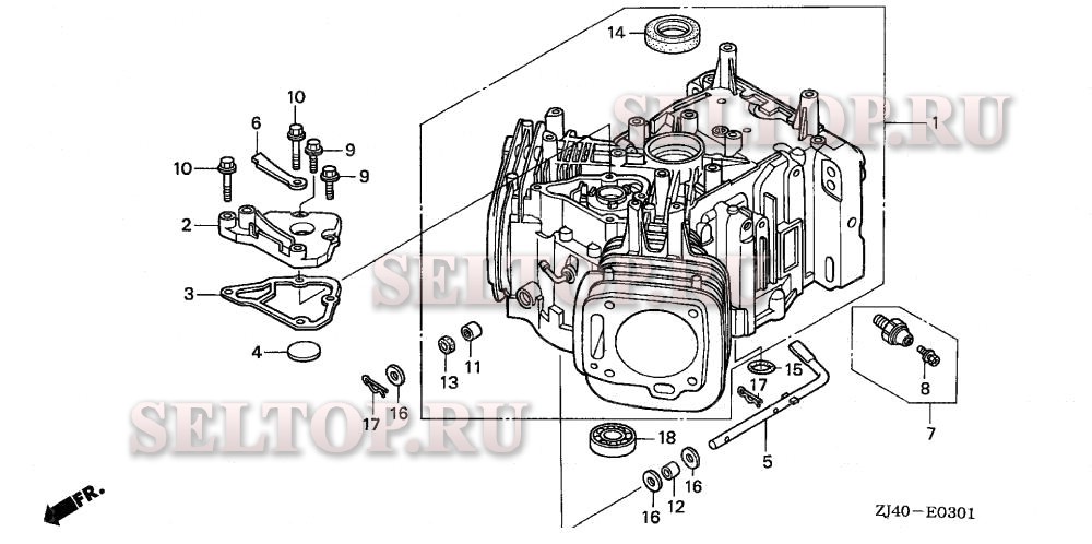 Цилиндр (2) для Honda GXV610K1 QWA/A, взрыв-схема: