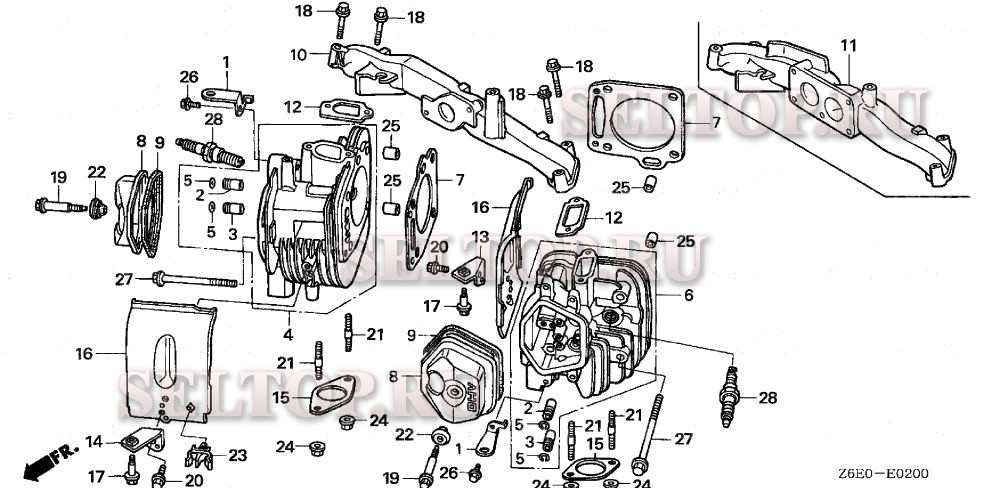 Головка цилиндра для Honda GXV610U1 QYC4, взрыв-схема: