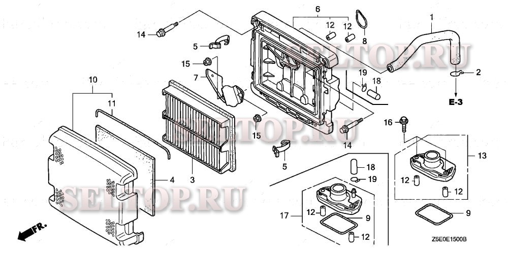 Воздушный фильтр для Honda GXV610U1 QZC2, взрыв-схема: