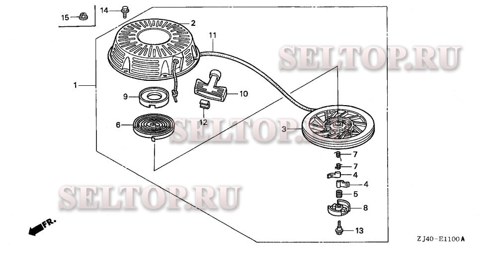 Ручной стартер для Honda GXV620K1 QWA, взрыв-схема: