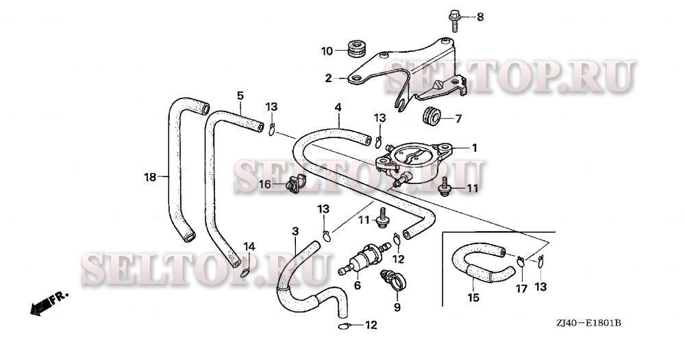 Топливный насос (2) для Honda GXV620K1 TAE2/A, взрыв-схема: