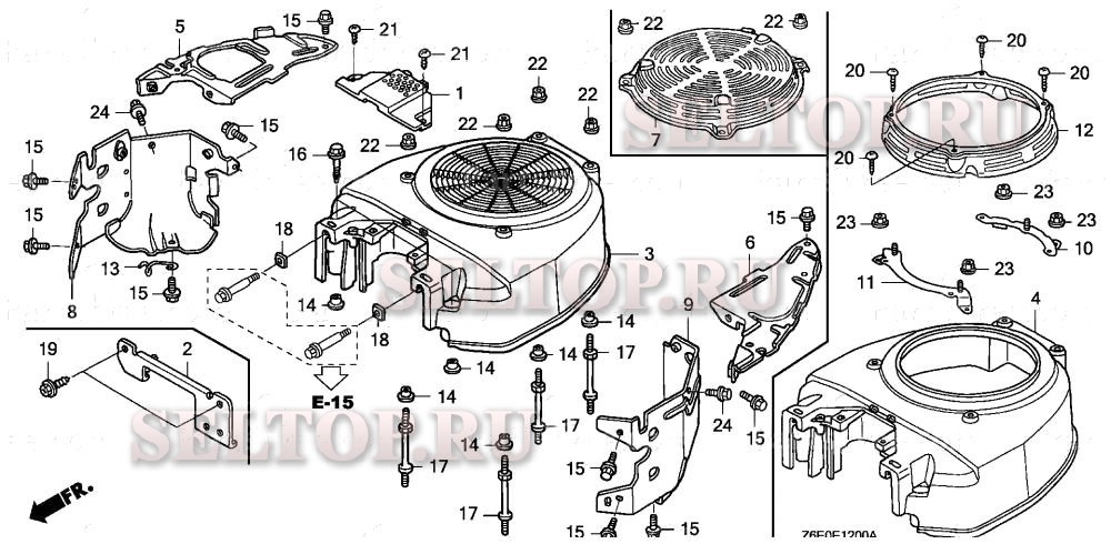 Кожух вентилятора для Honda GXV620R1 QWA, взрыв-схема: