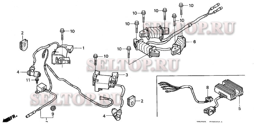 Катушка зажигания для Honda GXV670 TAF2/A, взрыв-схема: