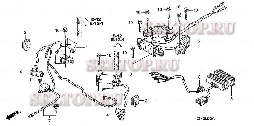 Катушка зажигания для Honda GXV670R TAF2, взрыв-схема: