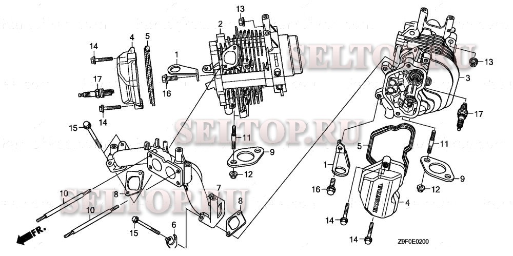 Головка цилиндра для Honda GXV690R TAF, взрыв-схема: