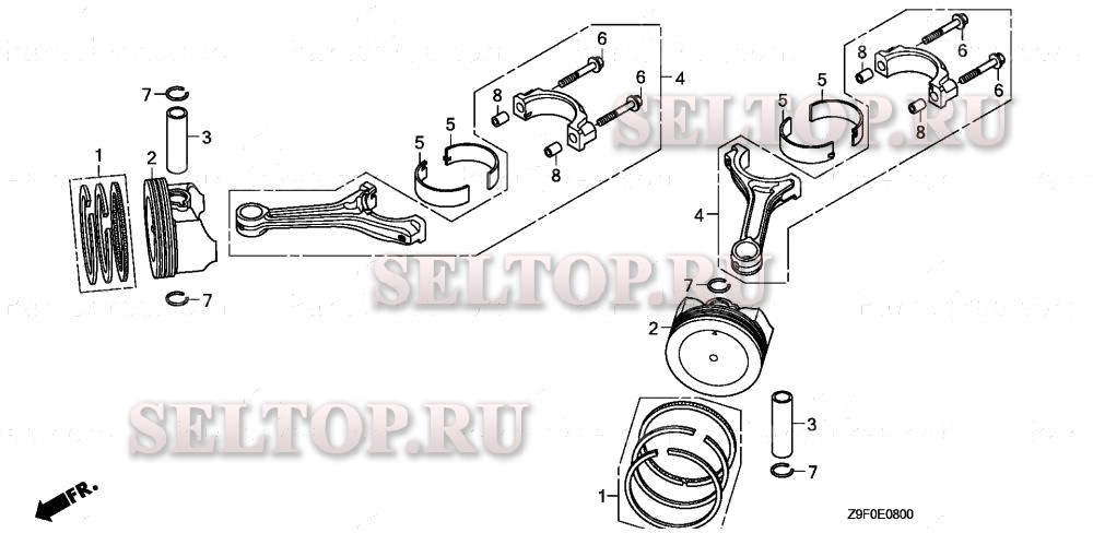 Поршень для Honda GXV690R TAF, взрыв-схема: