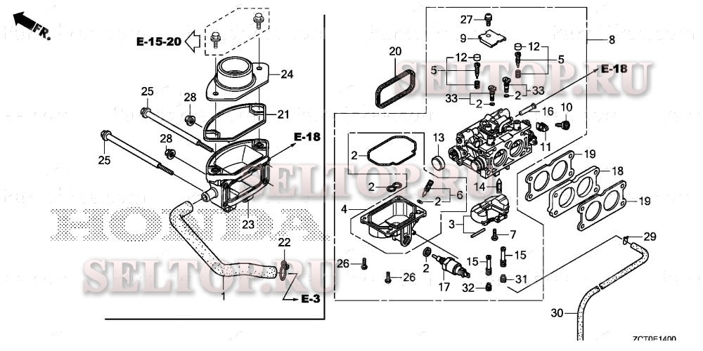 Карбюратор для Honda GXV690RH TAF, взрыв-схема: