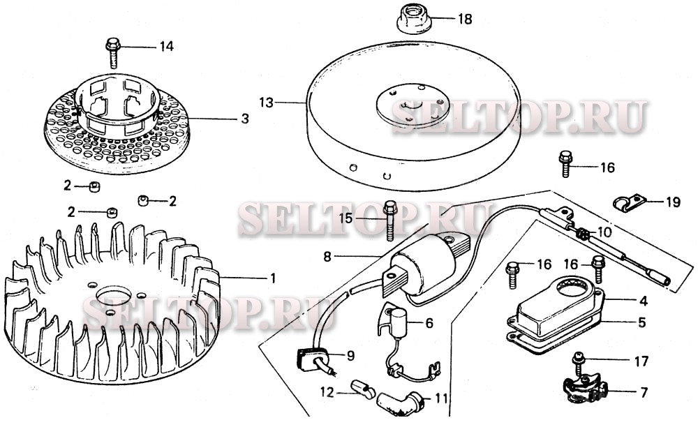 K2p, 5s маховик, прерыватель в сборе для Honda HR21-5 SDA, взрыв-схема: